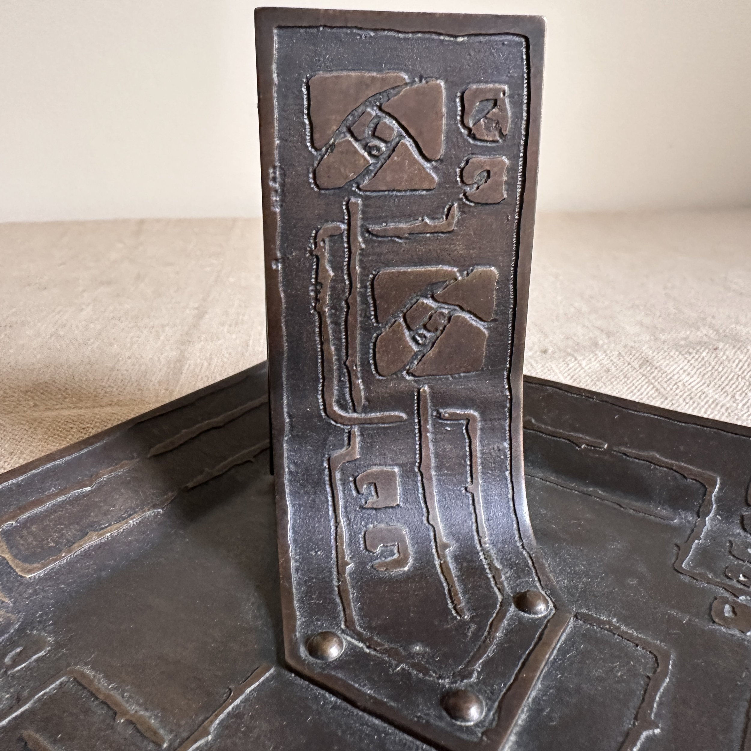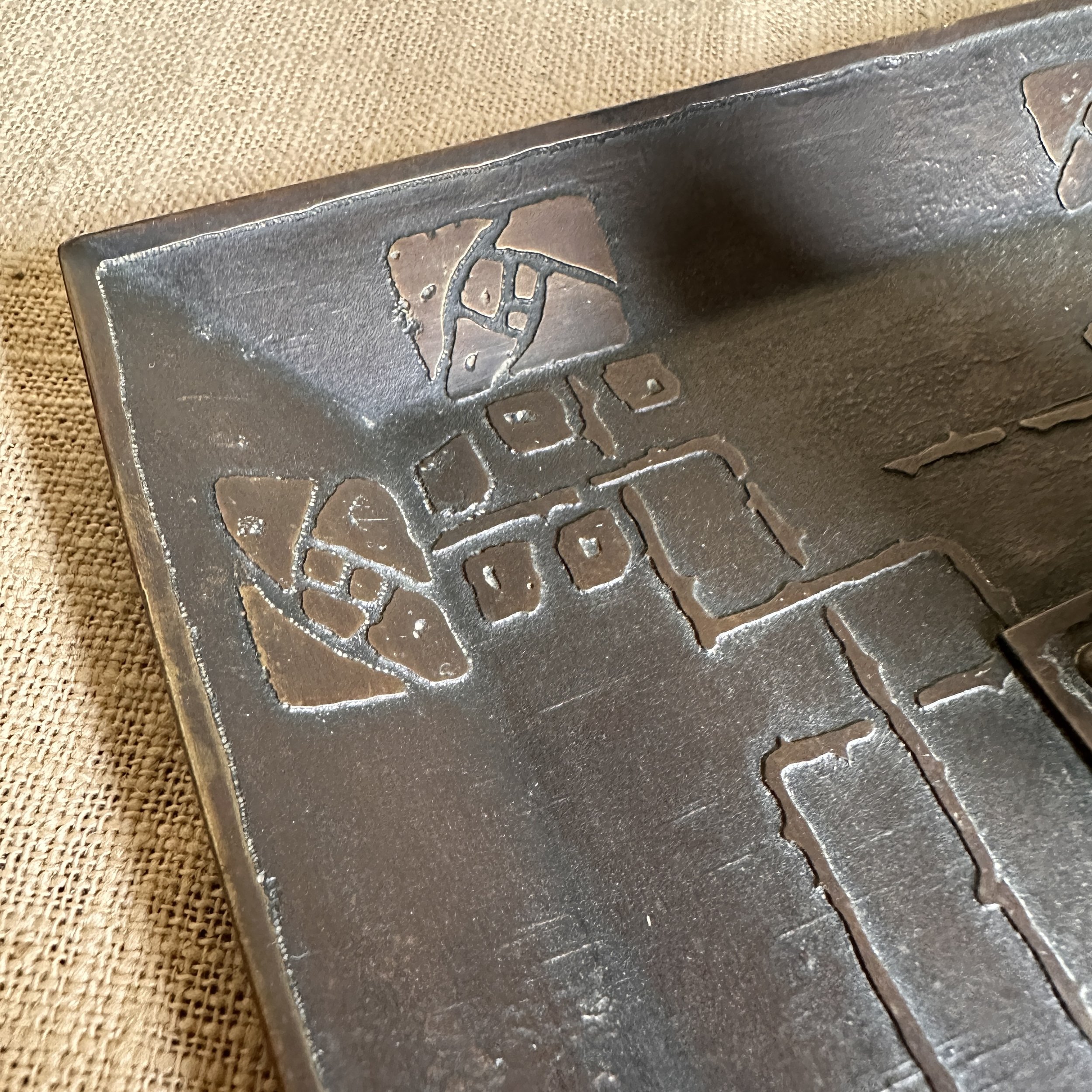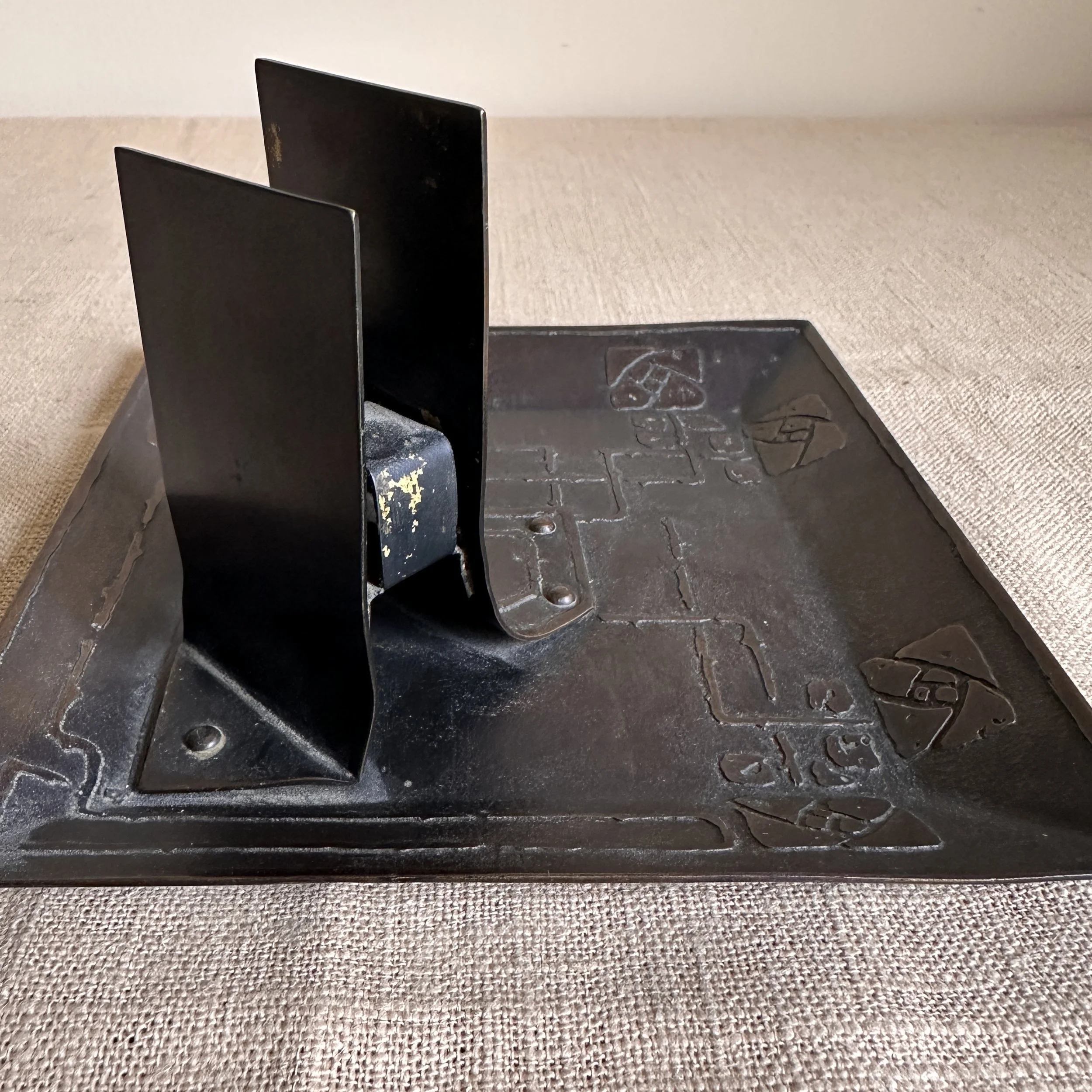 Carence Crafters match holder, Chicago circa 1906. A tray with a raised match holder made of copper with an acid etched Glasgos Rose pattern. Excellent condition with a dark original patina. Unsigned. Measures 5.75” square. $250