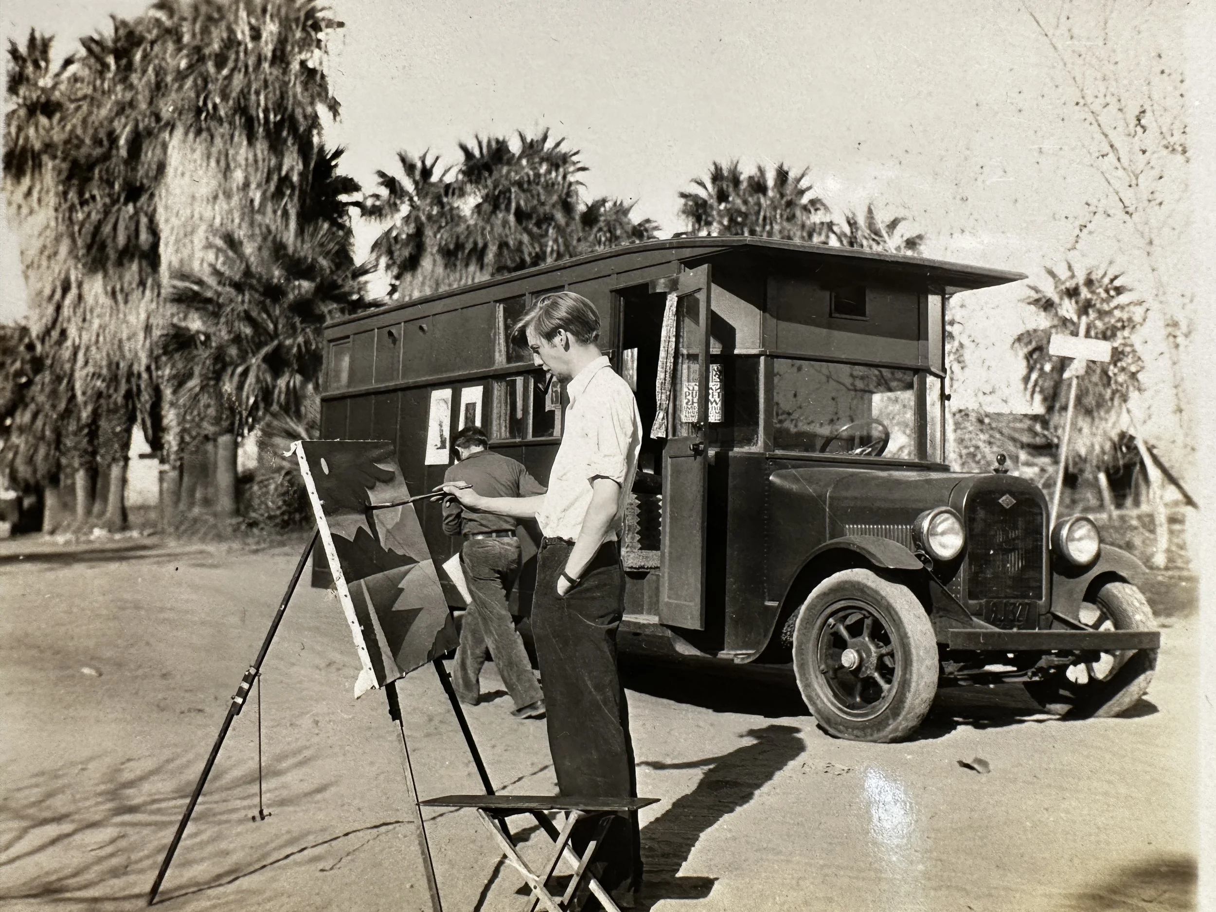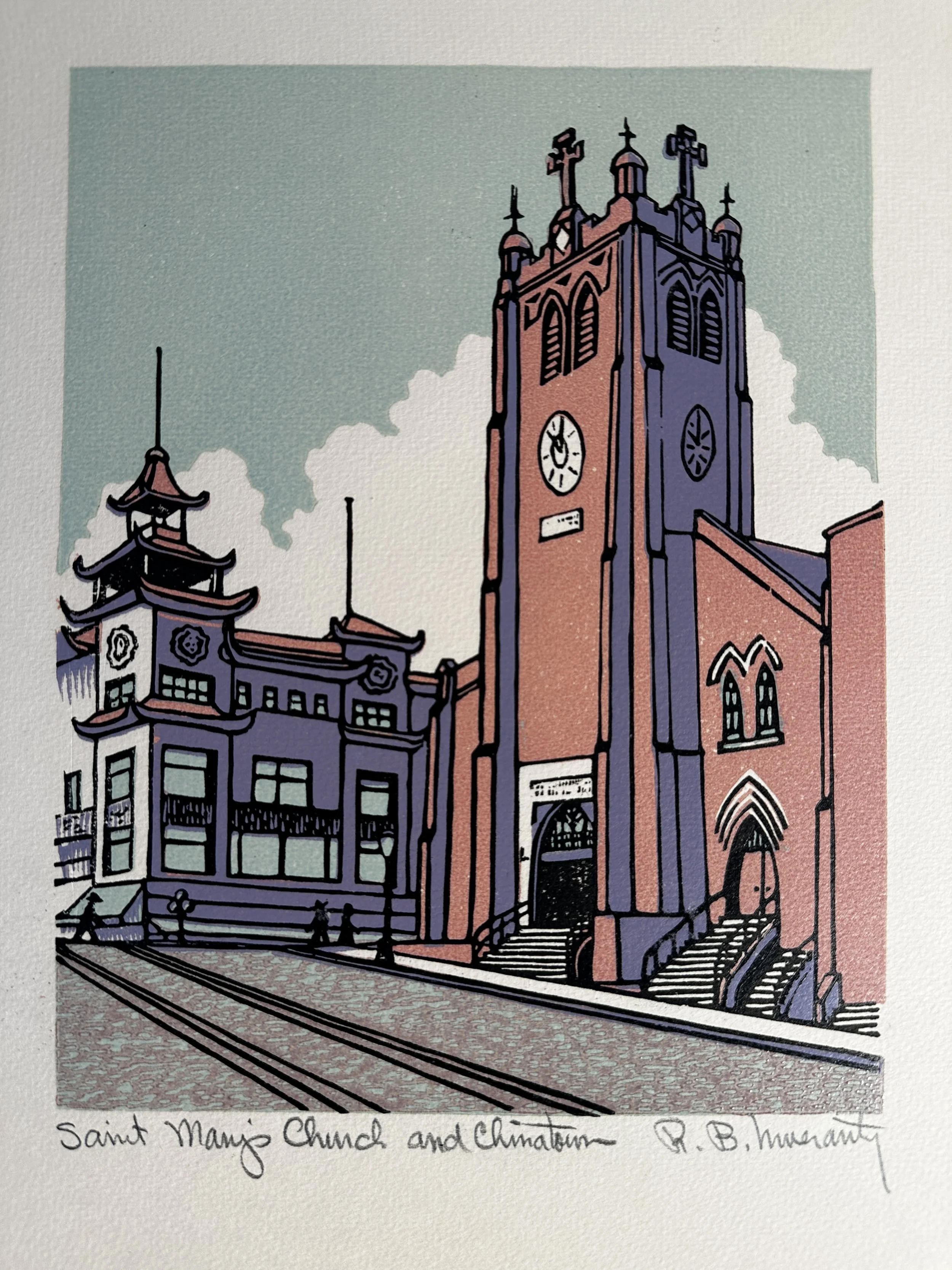 He exhibited as part of the Annual Exhibition of Northwest Artists in 1927 & 1928 along with his first one man show at the Seattle Fine Arts Society before leaving for San Francisco in 1929 where we taught art at the Y.W.C.A. and worked on block prints depicting the city. While in California, Bruce exhibited at Curtis Galleries, the Blanding Sloan Workshop Gallery, the Edward Weston Gallery in Carmel, “Studio on Wheels” in Santa Barbara & Ventura and the El Paseo Gallery in Palm Springs. In addition, he travelled extensively exhibiting work back in Seattle at Lowman & Handford (Pioneer Square) and the Henry Gallery (UW) as well as in Brooklyn, Chicago and Vancouver.