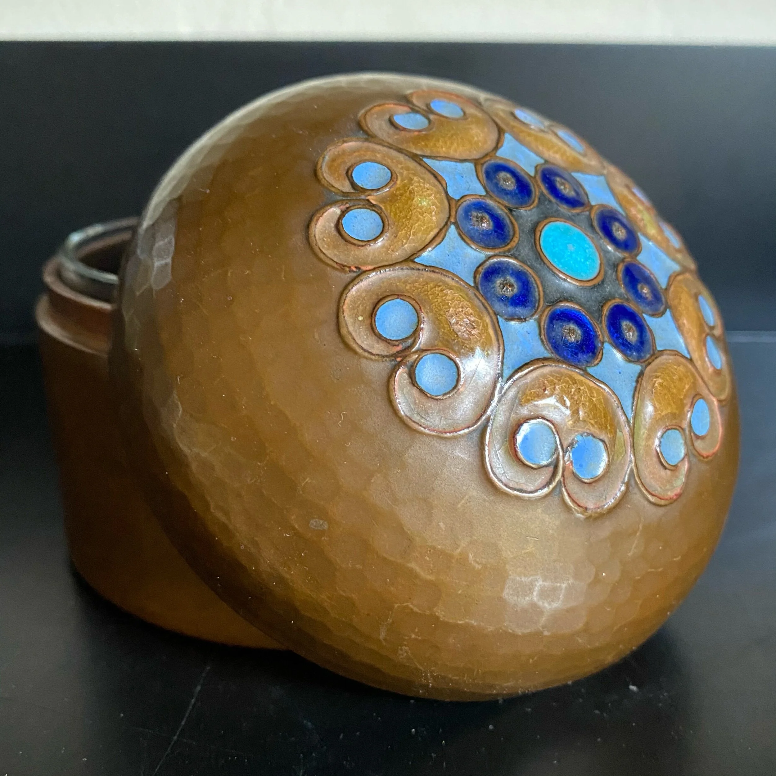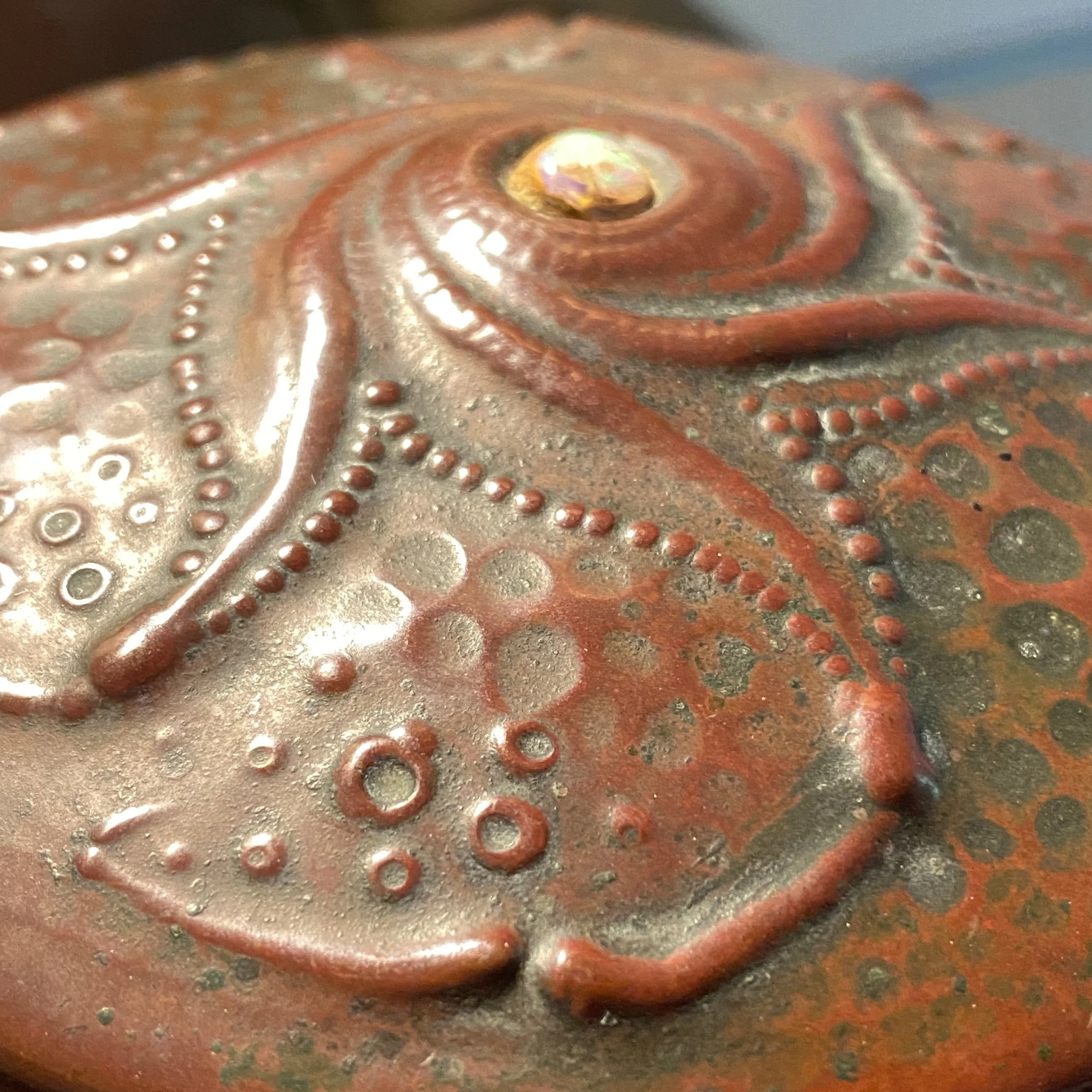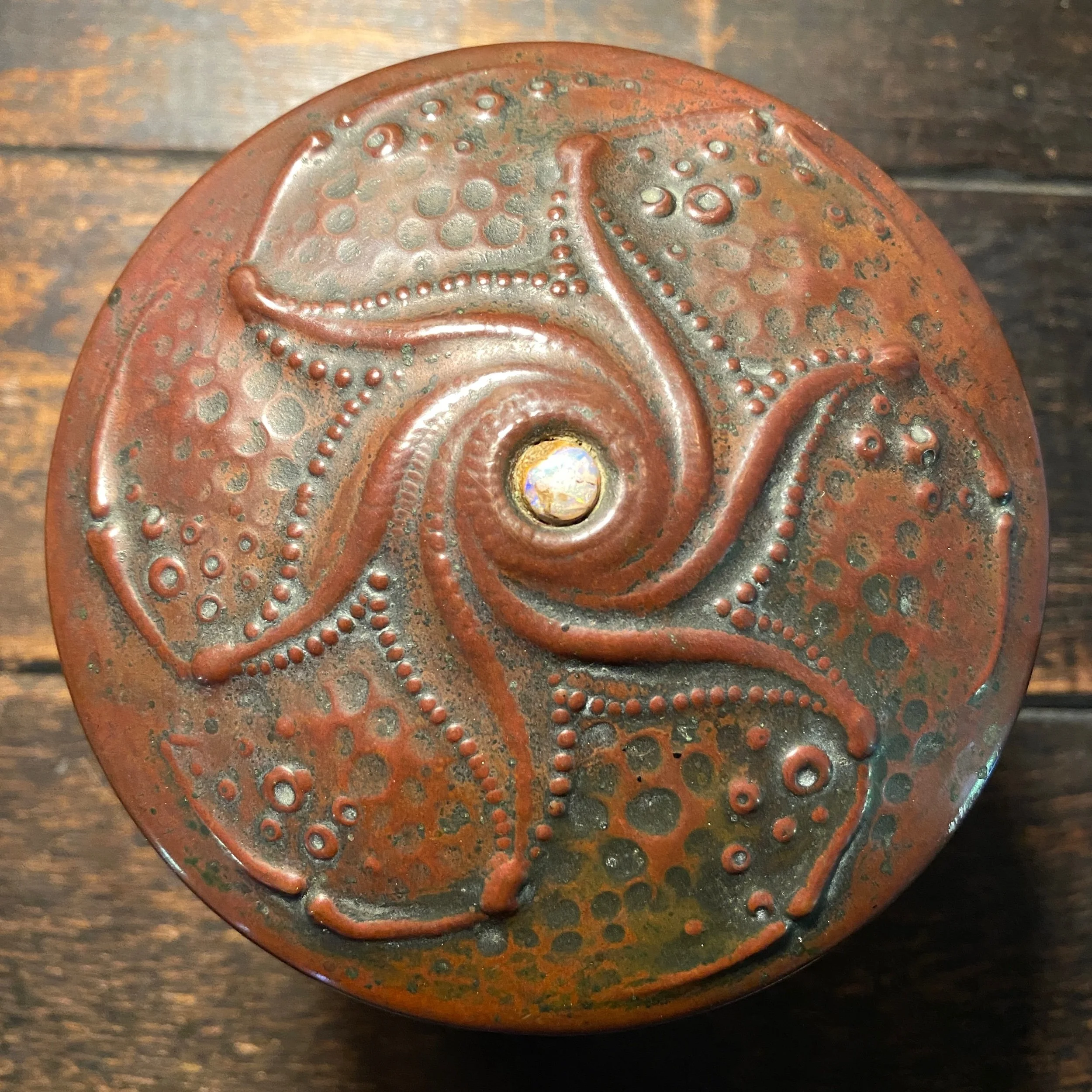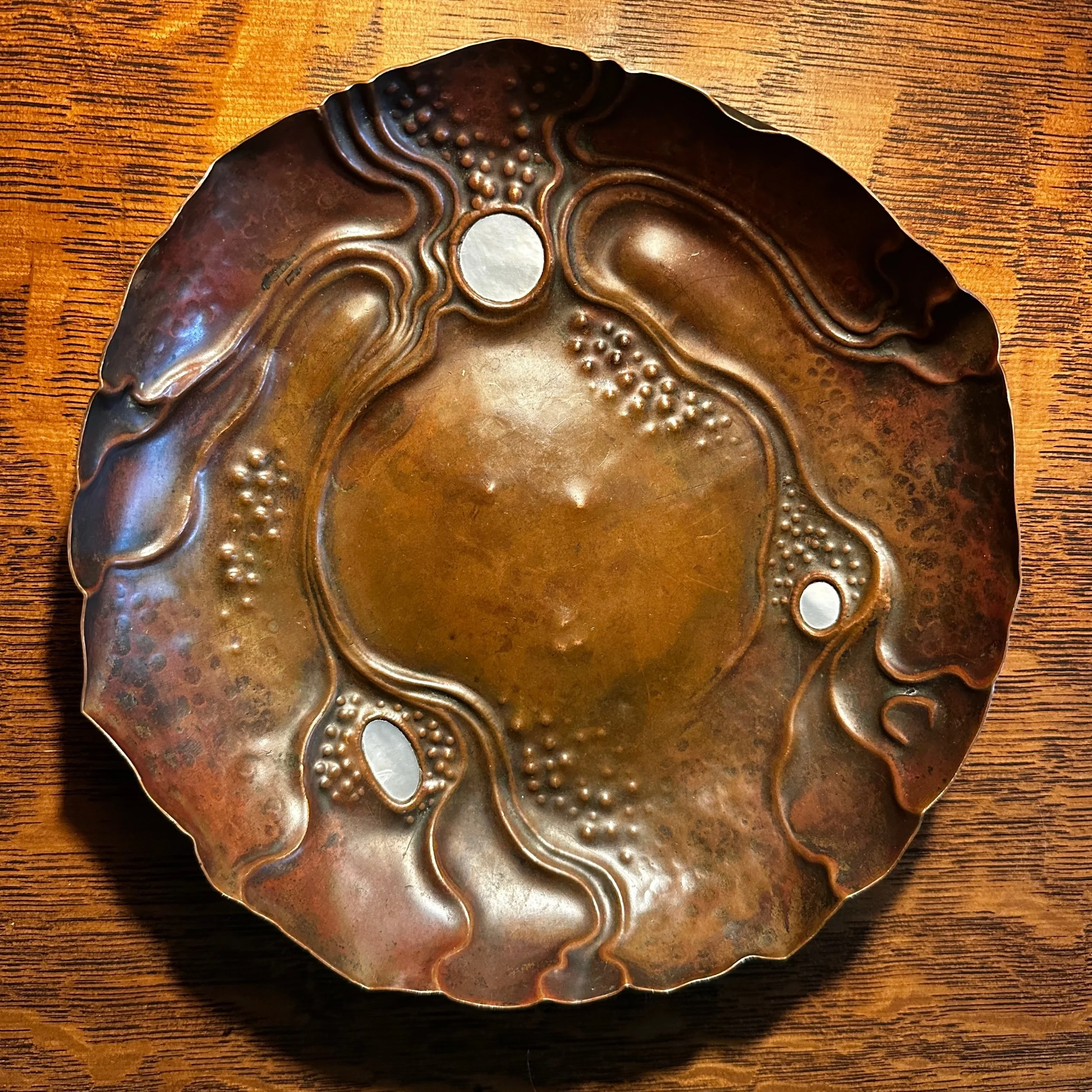 Ludwig Vierthaler was greatly inspired by the images from the oceans that were published late in the 19th Century. After training at Tiffany & Co in NYC, he returned to his native Germany to become a central figure of the Munich Secession. His early design work, dating to around 1905, was for the firm of Winhart & Co. This copper material is categorized by swirling hammering, flowing repouseé work and a myriad of sea creatures, many set with abalone. He partnered with Ehrenbock to form a new firm and crafted objects adorned with enamel work. The period trade magazines, as seen below, help showcase his stunning design work.