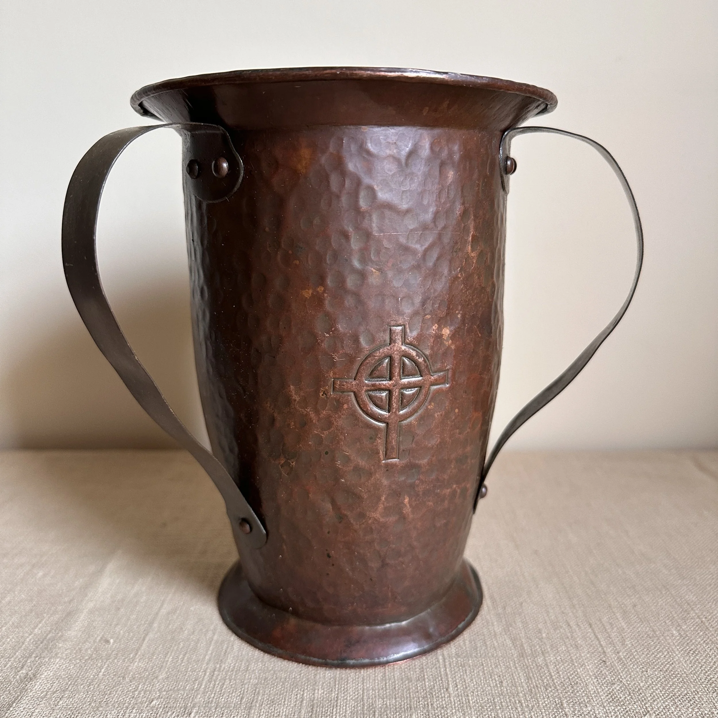Mission Inn vase, Riverside CA circa 1910. A fine example of this hammered copper vase, these were made as souvenirs from the gift shop of the Mission Inn in Riverside. Excellent condition, measures 7.5 “ tall and 5.25” wide at rim. SOLD