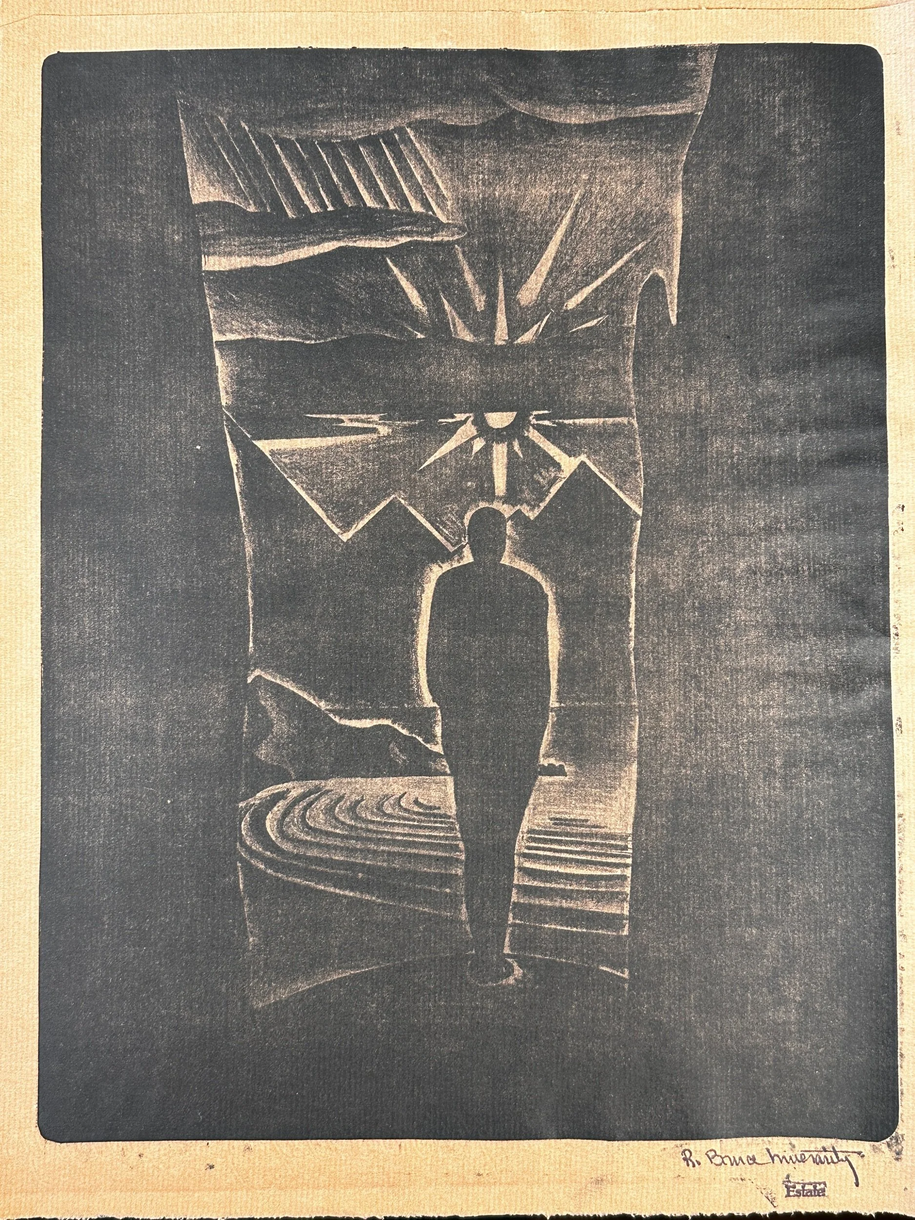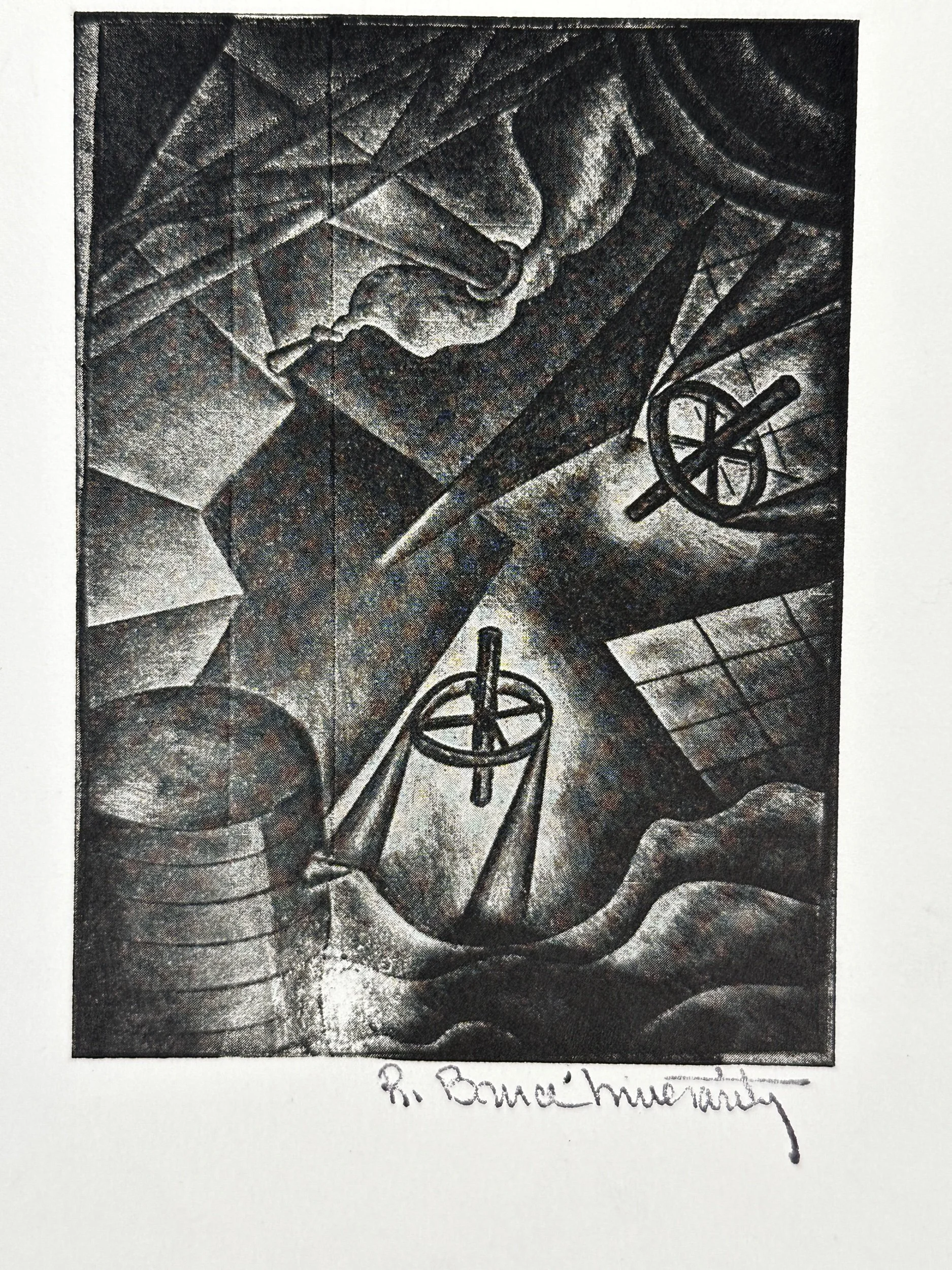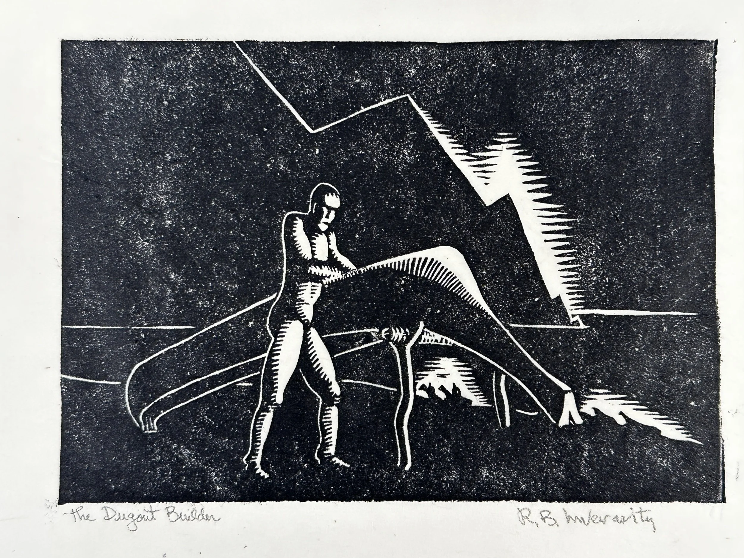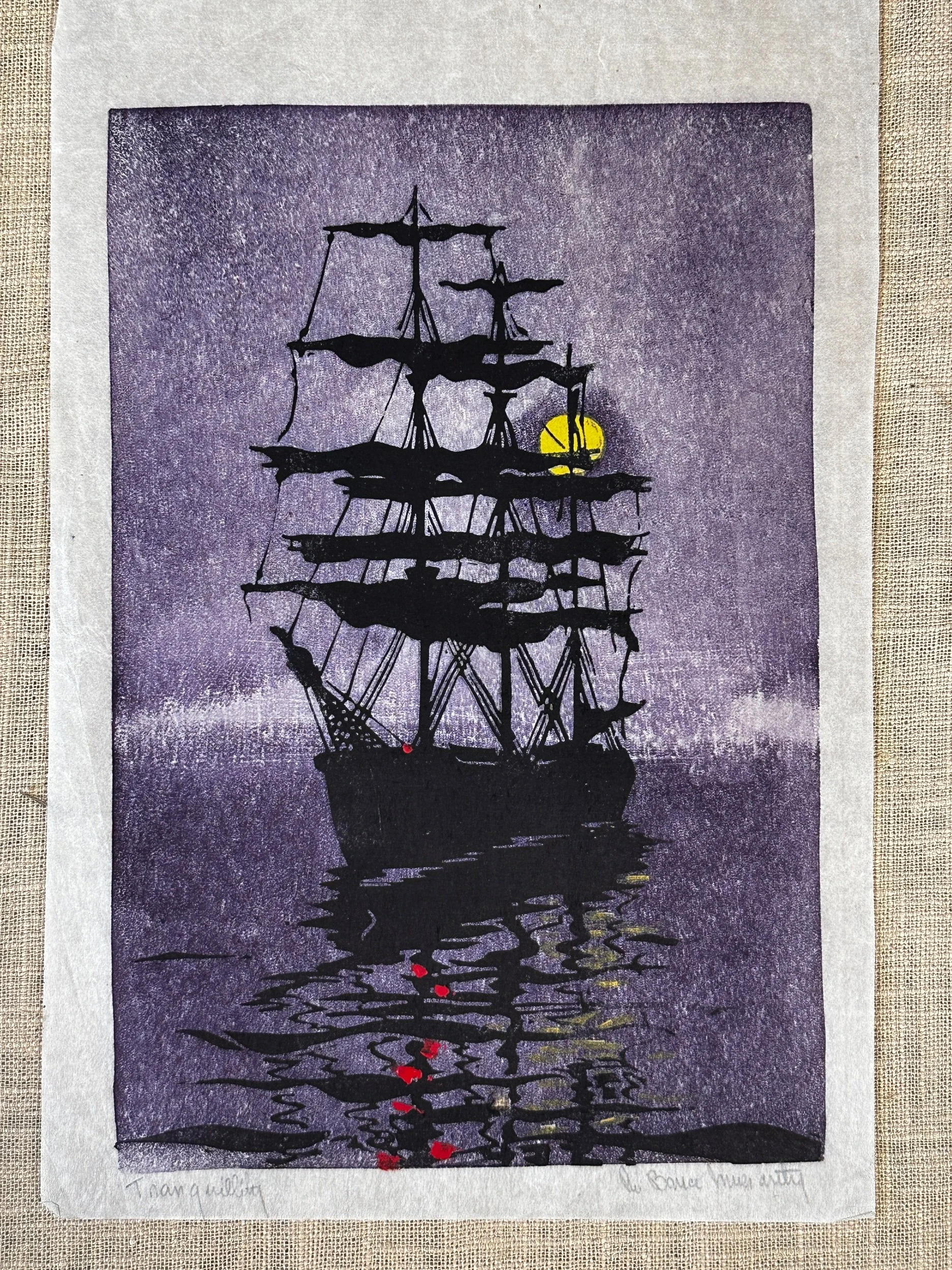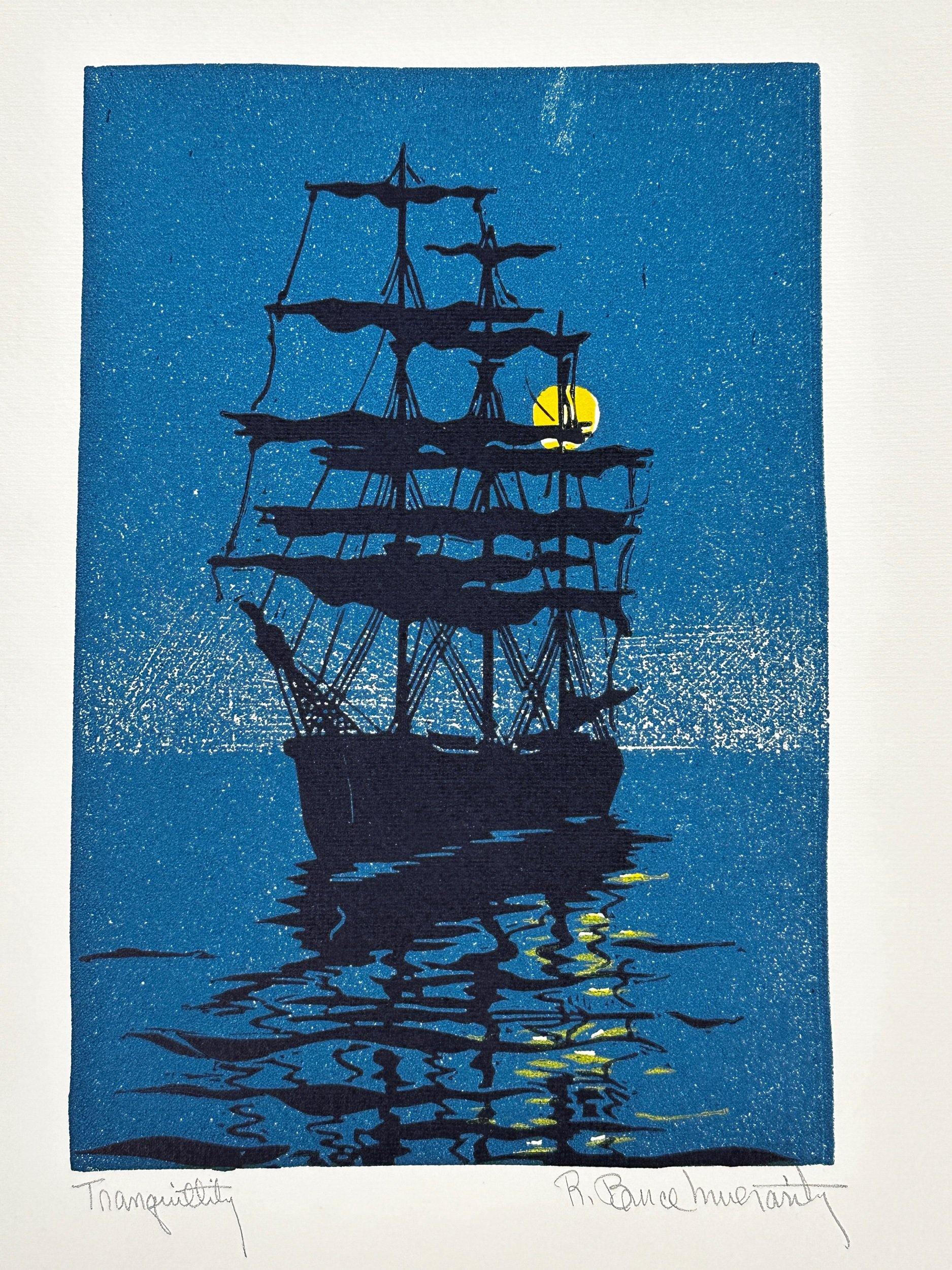 Many years ago I made a series of color block prints of San Francisco which sold very well. Then I did a series of etchings of Seattle which were sold by Lowman and Hanford then another series of color block prints of the northwest...after that I did a series of drawings with the thought in mind that they could be used to illustrate a book that I was writing. A friend of mine, at that time owner of Craftsman Press, and I thought these might also sell so we ran them off on a litho machine and I designed a little hand print as a symbol of the series. Well a few sold not well, as people were not interested in Indian things then. What you purchased at auction belongs to the last series. There was a color print of Lonely Sentinals and a two color print titled Lone Totem ...I have one of each...You are the only person who has ever mentioned them to me since about 1934 when they were made...there cannot have been too many copies in the beginning and certainly less now. Hope the above is of some help altho you and I may be the only people who have prints! We expect to be in Seattle agin this summer as I am working on a book and need to do some quick research..so we will have a chat then...